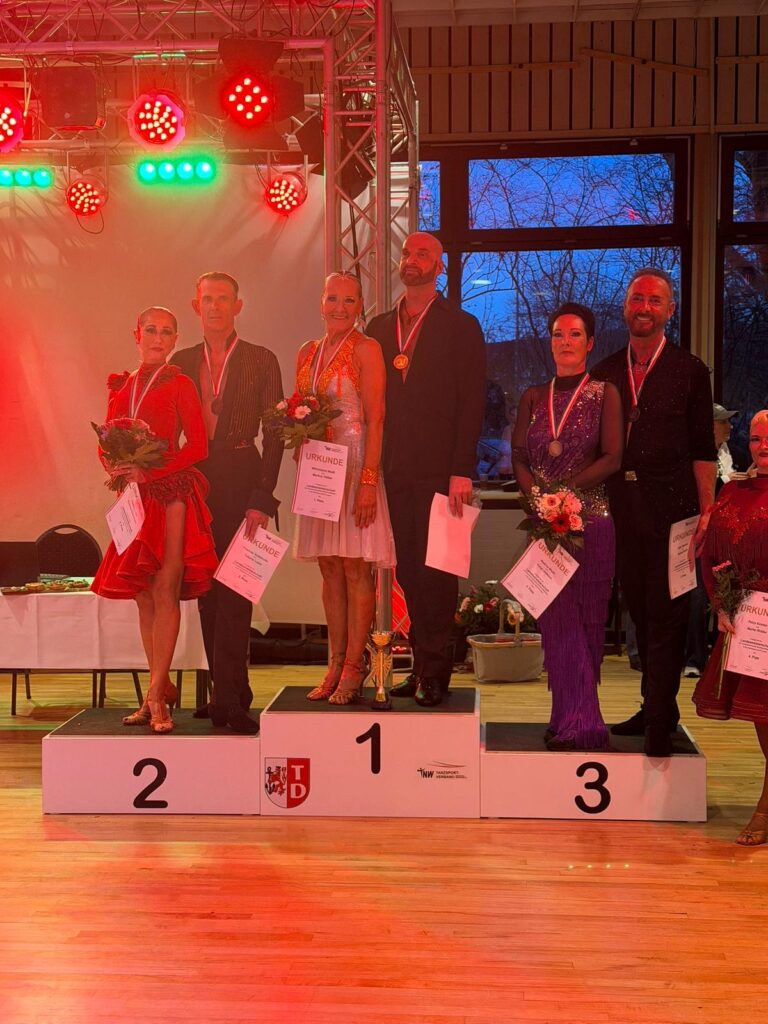 Ein besonderes Highlight war die SEN II A Latein, in der Sascha und Ann-Christin Timmen mit einer überzeugenden Leistung den Landesmeistertitel gewinnen konnten. Bereits zuvor waren die beiden in der SEN II S Latein an den Start gegangen und belegten dort den 10. Platz. In derselben Klasse erreichten Tim Clark und Susannah Havermann den 6. Platz, während Stefan Korfmacher und Nicole Rosendahl mit einem hervorragenden 2. Platz Vizelandesmeister wurden.